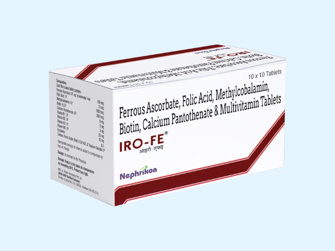 IRO – FE tablet is multivitamin formulation helps in RBC production, iron deficiency and improving bone health in CKD. IRO – FE restores vitamins loss in the patients taking hemodialysis.