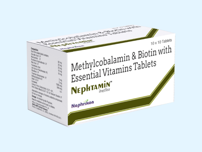 Nephtamin capsule is multivitamin formulation which helps in RBC production, iron deficiency and improving bone health in CKD. It restores vitamin loss in the patients taking haemodialysis.