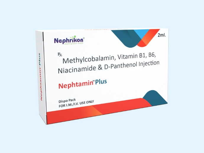 Nephtamin injection is multivitamin formulation which helps in RBC production, iron deficiency and improving bone health in CKD. It restores vitamin loss in the patients taking haemodialysis.